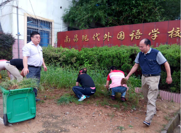 校園環(huán)境的好壞是家長對學校認識的第一印象。校辦公室在努力做好招聘老師、協(xié)助招生工作的同時,積極做好校園衛(wèi)生工作。為提升學校的整體形象,楊校長還親自帶領行政處室人員頂著烈日,將校園內(nèi)外的雜草拔除干凈,同時各學部校長也積極督促清潔工人,將本學部衛(wèi)生包干區(qū)打掃干凈。
