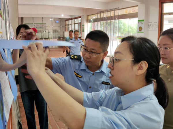 2023年9月14日上午,南昌縣縣委常委統(tǒng)戰(zhàn)部皮部長(zhǎng)、八月湖街道辦市場(chǎng)監(jiān)管局李局長(zhǎng)等領(lǐng)導(dǎo)一行冒著蒙蒙細(xì)雨深入我校進(jìn)行安全檢查,全面檢查了學(xué)校食堂開(kāi)學(xué)后的師生伙食服務(wù)情況及食品衛(wèi)生安全工作。