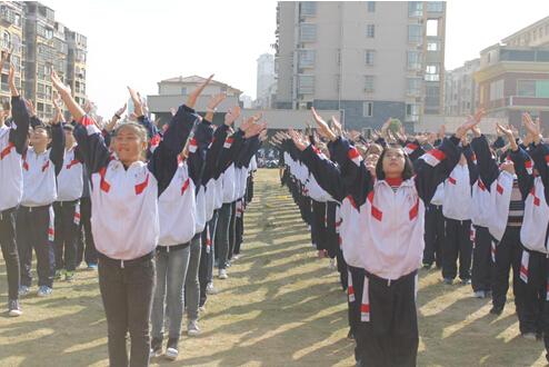 主持人宣布運動會開幕后,各年級體操表演比賽開始,他們著裝整齊,動作規(guī)范,成為運動場一道靚麗的風景。
