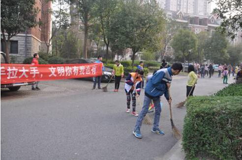 其中,11月20日下午,現(xiàn)外迎賓校區(qū)組織了100多名師生分別對正榮大湖之都社區(qū)、天倫華庭社區(qū)進(jìn)行了衛(wèi)生大清理。參加活動(dòng)的學(xué)生在楊小龍、張曉軍等班主任老師的帶領(lǐng)下,發(fā)揚(yáng)了不怕臟,不怕累的精神,積極參加到社區(qū)衛(wèi)生清掃活動(dòng)中。經(jīng)過近2小時(shí)的辛勤勞動(dòng),正榮大湖之都社區(qū)、天倫華庭社區(qū)的衛(wèi)生死角、道路、花壇中的塑料袋、碎紙片和建筑廢棄物等垃圾都被同學(xué)們清除干凈,整個(gè)小區(qū)的環(huán)境煥然一新,得到了社區(qū)居民的贊揚(yáng)和好評。