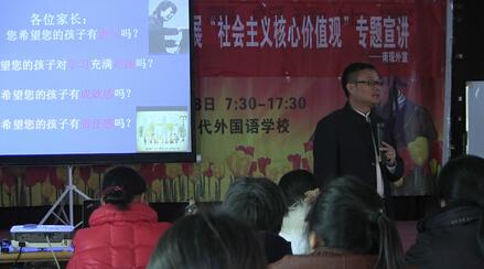 ? 為進(jìn)一步增進(jìn)家校之間的聯(lián)系,促進(jìn)學(xué)校與家庭、教師與家長(zhǎng)的交流溝通,更好的形成家校教育的合力,12月17日下午,南昌現(xiàn)代外國(guó)語(yǔ)學(xué)校舉辦了“智慧父母,成長(zhǎng)導(dǎo)航”家庭親子教育服務(wù)公益活動(dòng),著名“親子教育專(zhuān)家、中國(guó)親子英語(yǔ)第一人”陳林老師為家長(zhǎng)做了精彩報(bào)告,學(xué)校會(huì)議報(bào)告廳座無(wú)虛席,除我校學(xué)生家長(zhǎng)外,其他外校學(xué)生家長(zhǎng)近200余名慕名前來(lái)聽(tīng)取了報(bào)告。