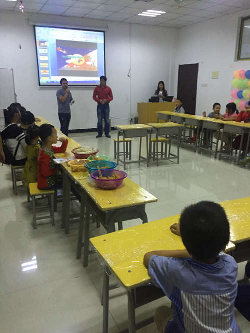 9月25日,南昌英邁培訓學校在教學大樓5樓多媒體教室開展了“迎中秋,做月餅”主題活動,本次活動吸引了英邁學校的全體教職工以及學生和家長朋友們的積極參與?;顒庸卜譃橥饨坦适聲⒂螒?、做月餅、合影這四個流程。
