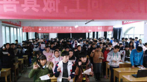“我要忘記昨天的光榮和遺憾,我要把今天當(dāng)做生命的最后一天,我要用自信驅(qū)趕黑暗,我要用勤奮書寫燦爛,我要讓今天成為不朽的紀(jì)念日,我要讓心中的夢想實現(xiàn),中考,我拼了!”3月9日下午,南昌現(xiàn)代外國語學(xué)校(迎賓校區(qū))2016屆中考百日沖刺動員大會在校圖書館三樓隆重召開,初三年級全體學(xué)生進行了宣誓。