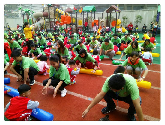 爸爸媽媽和寶貝們開心的進行游戲: