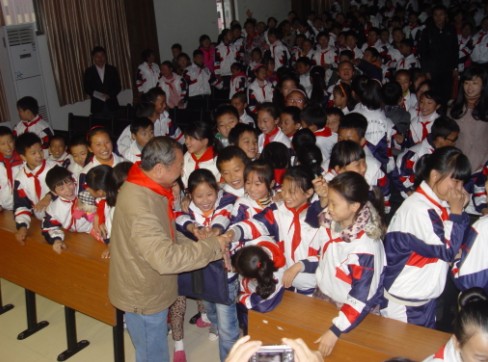 報告結(jié)束,當鄭老走下講臺時,立刻就被孩子們圍了起來。大家爭先恐后與他握手,有的同學還情不自禁地喊起“鄭爺爺好!”。會場內(nèi)氛圍融洽,令人感動。整場報告會取得了超出預期的良好效果。