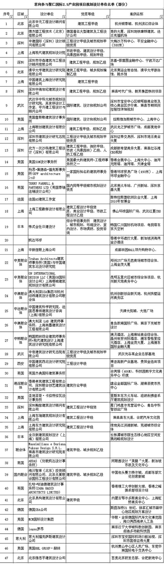 附:意向參與聚仁國(guó)際2.5產(chǎn)業(yè)園項(xiàng)目規(guī)劃設(shè)計(jì)單位名單(部分)
