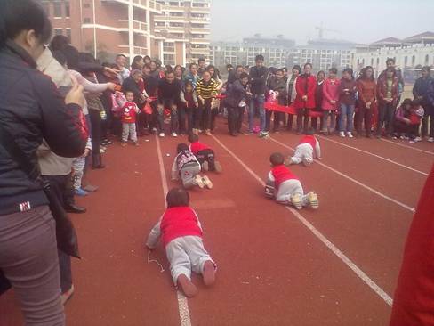 小2班的小朋友們在此次運動會上的參加的比賽有寶寶爬、滾球和拾豆豆等。第1個比賽項目是寶寶爬,每位小朋友爬的速度很快,都有很棒的表現(xiàn)。有的幼兒還翹起他們的小屁屁爬,逗得在場家長們捧腹大笑;第2個比賽項目是滾球,在滾球的過程中,小朋友們步伐飛快,顯示了他們很強的身體靈活性;第3個比賽項目是拾豆豆,在游戲過程中,小朋友們牢記游戲的規(guī)則,沒有一個犯規(guī)的,很好地完成了比賽。三個比賽下來,孩子們都很開心。通過這樣的運動會,既鍛煉了孩子們的身體,又培養(yǎng)了他們的樂趣。