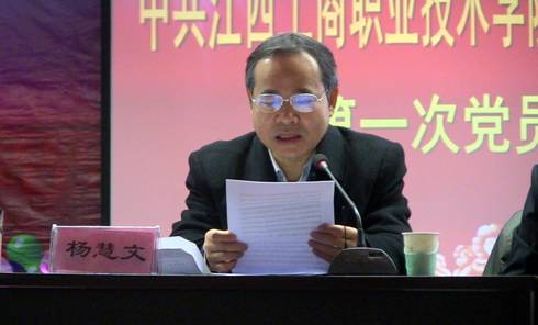 會(huì)議開(kāi)始后,熊慶任宣讀了教育工委《關(guān)于成立中共江西工商職業(yè)技術(shù)學(xué)院委員會(huì)的批復(fù)》,同意成立中共中共江西工商職業(yè)技術(shù)學(xué)院委員會(huì)。隨后,楊慧文代表省委教育工委、省教育廳社辦黨委對(duì)對(duì)本次大會(huì)的召開(kāi)表示祝賀,對(duì)工商學(xué)院近幾年建設(shè)和發(fā)展所取得的成績(jī)和黨建工作給予了充分肯定。他要求學(xué)院以黨委成立為契機(jī),認(rèn)真貫徹執(zhí)行中央、省委和省教育工委的有關(guān)文件以及歷次高校會(huì)議精神,不斷加強(qiáng)和改進(jìn)黨建工作,努力探索民辦高校黨建工作的新路子;要緊密結(jié)合形勢(shì)開(kāi)展思想政治教育,提高全體黨員和師生員工綜合素質(zhì);要著力維護(hù)學(xué)校校園和諧穩(wěn)定,牢牢把握黨對(duì)高校意識(shí)形態(tài)工作的領(lǐng)導(dǎo)權(quán)和主動(dòng)權(quán);要積極做好群團(tuán)組織的領(lǐng)導(dǎo)工作,努力推進(jìn)學(xué)校各項(xiàng)事業(yè)的發(fā)展,使學(xué)校辦出特色,辦出水平。