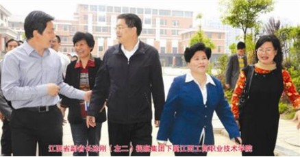 站在文化墻前,一幅幅大型照片選映入眼簾,一股強(qiáng)烈的集團(tuán)榮譽(yù)感迎面而來:國(guó)務(wù)院副總理回良玉在第九屆全國(guó)創(chuàng)業(yè)之星經(jīng)驗(yàn)交流表彰大會(huì)上為胡樂平董事長(zhǎng)頒發(fā)‘創(chuàng)業(yè)之星’大獎(jiǎng);江西省委書記孟建柱在胡樂平董事長(zhǎng)陪同下考察集團(tuán);江西省委書記萬紹芬在胡樂平董事長(zhǎng)陪同下視察集團(tuán)下屬學(xué)校;江西省副省長(zhǎng)孫剛視察集團(tuán)下屬江西工商職業(yè)技術(shù)學(xué)院;胡樂平董事長(zhǎng)與江西省省長(zhǎng)吳新雄,江西省委常委、南昌市委書記余欣榮等領(lǐng)導(dǎo)合影;胡樂平董事長(zhǎng)與江西省委常委、常務(wù)副省長(zhǎng)凌成興合影;全國(guó)政協(xié)副主席厲無畏、胡樂平董事長(zhǎng)與參加中國(guó)經(jīng)濟(jì)貿(mào)易促進(jìn)會(huì)年會(huì)的全體嘉賓合影;集團(tuán)副董事長(zhǎng)劉雁華與教育部副總督學(xué)郭福昌合影;商務(wù)部產(chǎn)業(yè)損害調(diào)查局局長(zhǎng)劉歡向胡樂平董事長(zhǎng)頒發(fā)中國(guó)經(jīng)濟(jì)貿(mào)易促進(jìn)會(huì)副會(huì)長(zhǎng)聘書;江西省委教育工委書記、教育廳廳長(zhǎng)虞國(guó)慶視察集團(tuán)下屬江西工商職業(yè)技術(shù)學(xué)院等,各級(jí)政府、領(lǐng)導(dǎo)對(duì)集團(tuán)發(fā)展的關(guān)心與支持,極大地增強(qiáng)了員工的責(zé)任感和榮譽(yù)感,有效提升了員工的凝聚力,營(yíng)造了團(tuán)結(jié)奮進(jìn)、積極向上的工作氛圍。