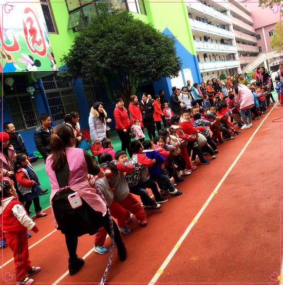 家長們除了參觀孩子們的早操,還觀摩了幼兒園的盥洗、餐前教育,以及一系列的教學(xué)活動。戶外進(jìn)行的拔河比賽,孩子們的表現(xiàn)讓各位家長都稱贊不已:在拔河比賽中,孩子們個個鼓足干勁,齊心協(xié)力,堅持到底。