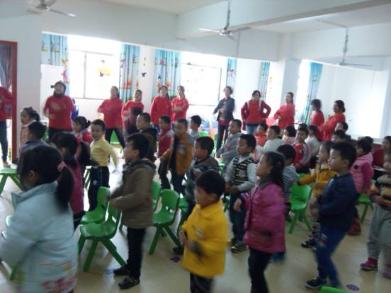 觀摩活動(dòng)上,兩所幼兒園的教師紛紛登臺(tái)亮相,展示了幼兒園音樂(lè)律動(dòng)游戲課程的新形式、新理念、新方法。音樂(lè)律動(dòng)是幼兒園教學(xué)活動(dòng)不可缺少的環(huán)節(jié)和幼兒常規(guī)教育行之有效的手段之一。自辦園以來(lái),迪斯尼和園外園幼兒園每學(xué)期都會(huì)組織教師開(kāi)展幼兒音樂(lè)律動(dòng)課程教研活動(dòng),并在每次活動(dòng)之后進(jìn)行教學(xué)反思。通過(guò)多年教研活動(dòng)的總結(jié)和反思,此次的幼音樂(lè)律動(dòng)觀摩活動(dòng)又得到了提煉和升華,老師們不僅把唱歌、舞蹈、律動(dòng)、音樂(lè)游戲、音樂(lè)欣賞等音樂(lè)形式滲透到幼兒的常規(guī)訓(xùn)練,還增加了師生互動(dòng)環(huán)節(jié),這樣不僅提高了幼兒的音樂(lè)素養(yǎng)和音樂(lè)感受能力,還增進(jìn)了老師和幼兒之間的感情。